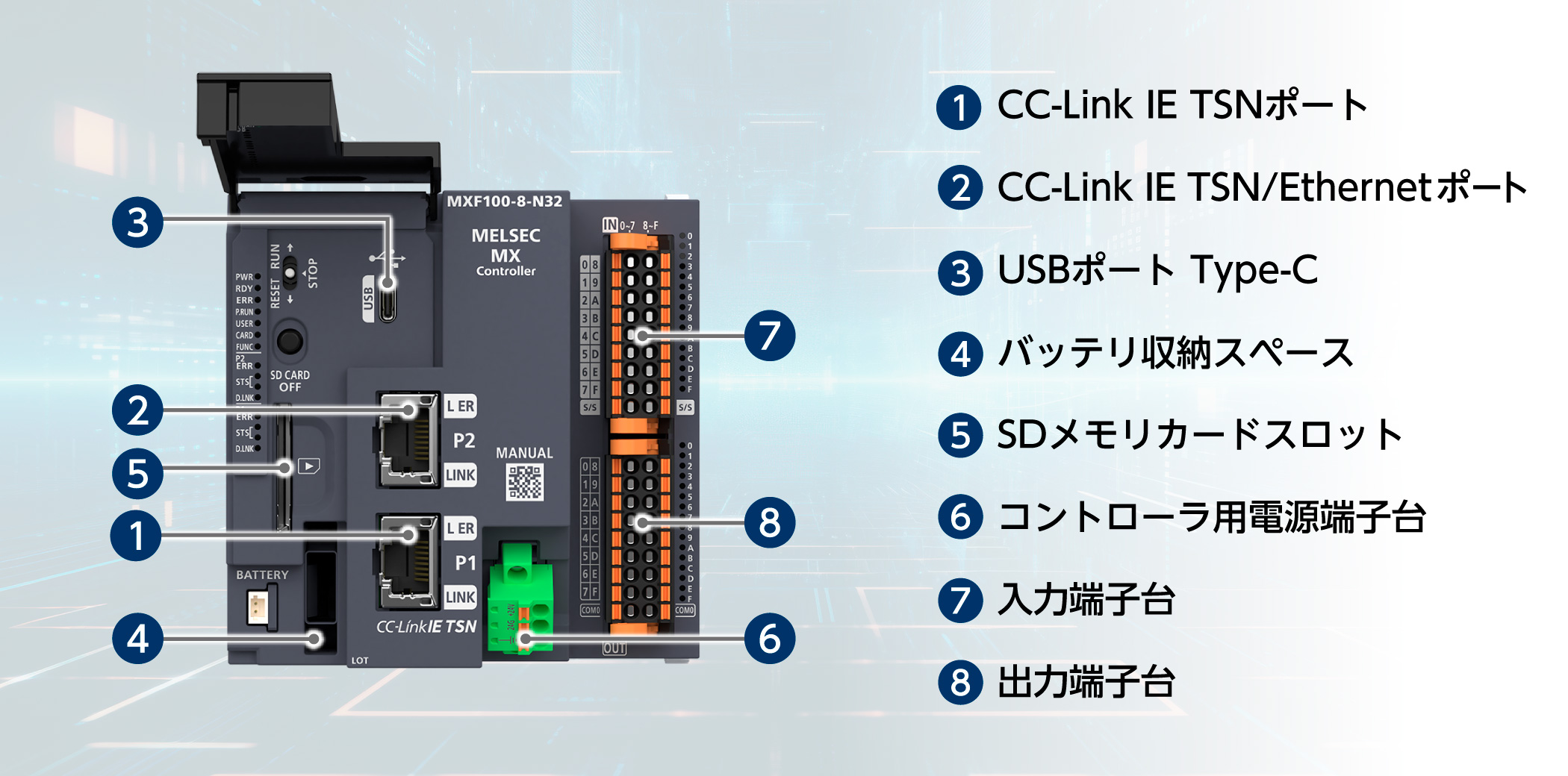- 高速・大容量のCC-Link IE TSNも対応可能なEthernetポート内蔵