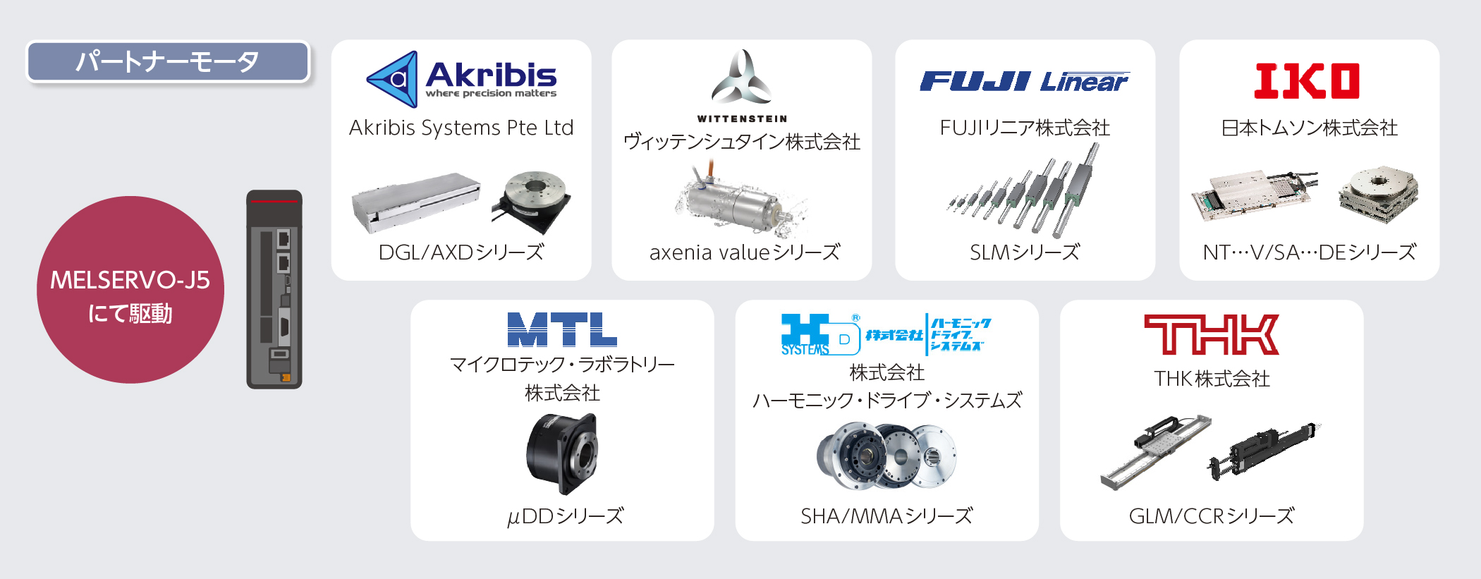豊富なパートナーメーカーとの連携により、さまざまな種別のモータから用途に適したものを選定できます。*1