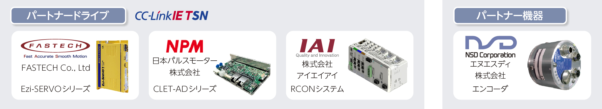 MELSERVOだけでなく、CC-Link IE TSN対応の他社ドライブユニットとも連携できます。