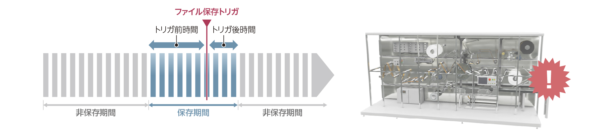 トラブル発生前後や設備サイクル開始を起点に自動でデータを記録