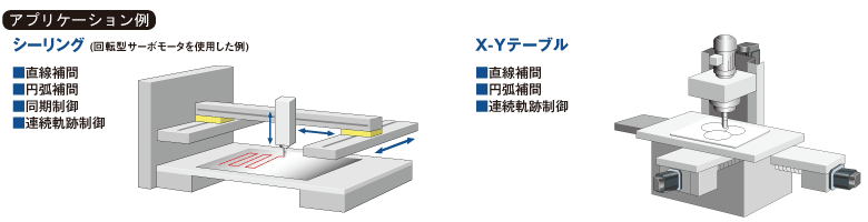 - 直線補間制御(最大4 軸)、2 軸円弧補間制御、定寸送り制御、および連続軌跡制御など豊富な制御形式で様々な用途に対応できます。