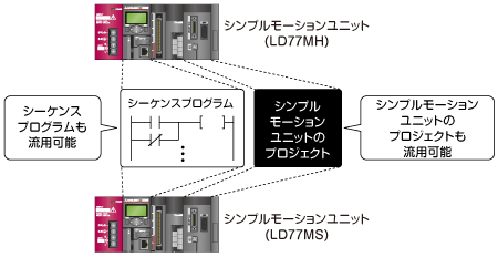 シンプルモーションユニット(LD77MH)のプロジェクトやシーケンスプログラムは、シンプルモーションユニット(LD77MS)のプロジェクトに簡単に置き換え可能です。