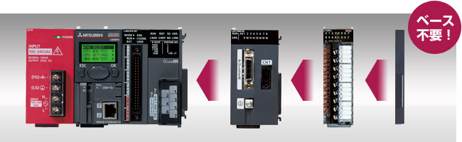 MELSEC-Lシリーズはベースレス構造を採用し、制御盤内の省スペース化を実現しました。