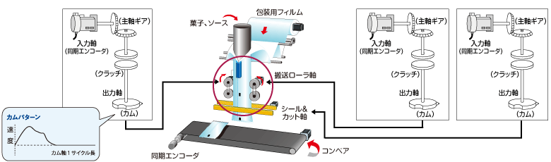 - 同期制御、カム制御