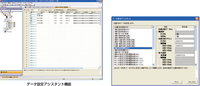 データ設定アシスタント機能、補助円弧の自動計算などの機能により簡単に位置決めデータが設定できます。