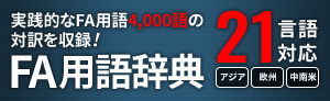 海外にご赴任、ご出張される方が現地の設計・製造現場で使える実践的なFA用語(4000語以上)を収録した FA用語辞典 (日本語⇔英語他)をご用意しました。現地スタッフとのコミュニケーションにご活用頂けます。