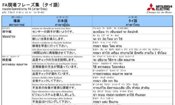 生産現場でよく用いられるフレーズを場面別(設計・製造・保守等)に整理し、FA現場フレーズ集に纏めました。タイ語、英語での現地スタッフとのスムーズなコミュニケーションの一助としてご利用ください。
