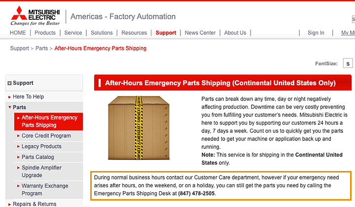 <緊急出荷電話番号> FA機器・CNC:+1-(847)478-2505(有料)