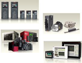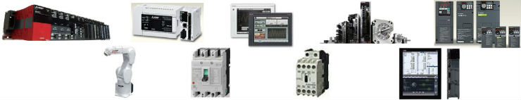 シーケンサ、表示器、サーボ(アンプ/モータ)、インバータ、ロボット、配電制御機器(ブレーカ/マグネットスイッチ)、CNC等