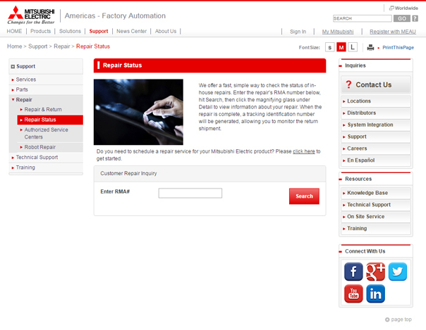 三菱電機北米FAセンターでのサービスメニュー
