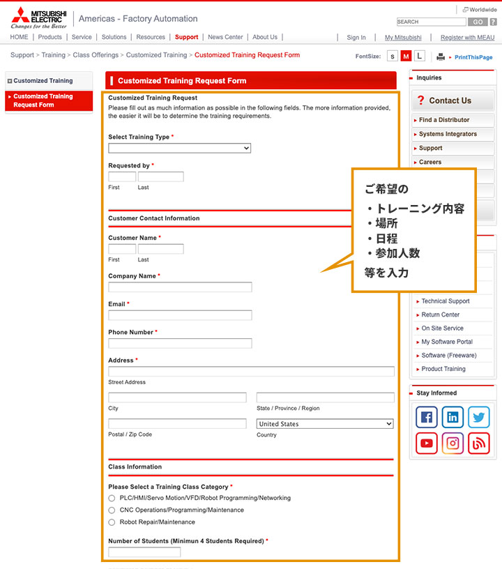 MITSUBISHI ELECTRIC AUTOMATION. INC. Webサイトで各製品のトレーニングスクールをご予約いただく事が可能です。
