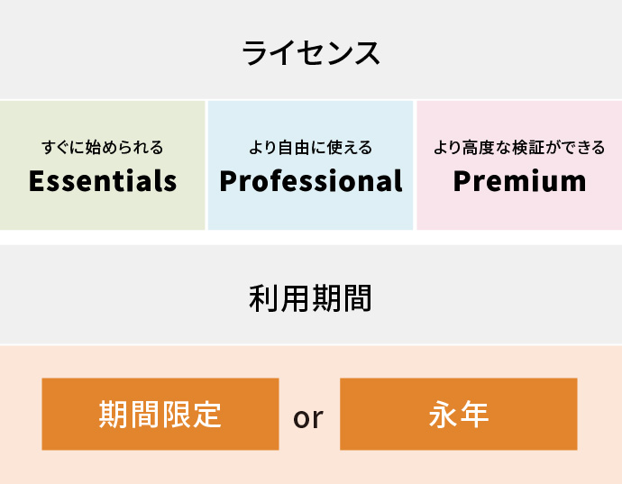 安価なライセンスで効果を確かめた後に上位グレードのライセンスを購入いただくなど、スモールスタートで始められます。
