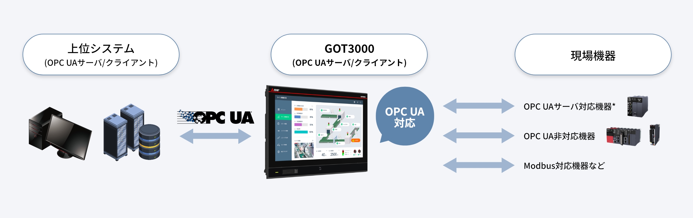 *:1台のGOTに対して、OPC UAサーバは1台のみ接続可能です。複数台の接続については、将来対応です。